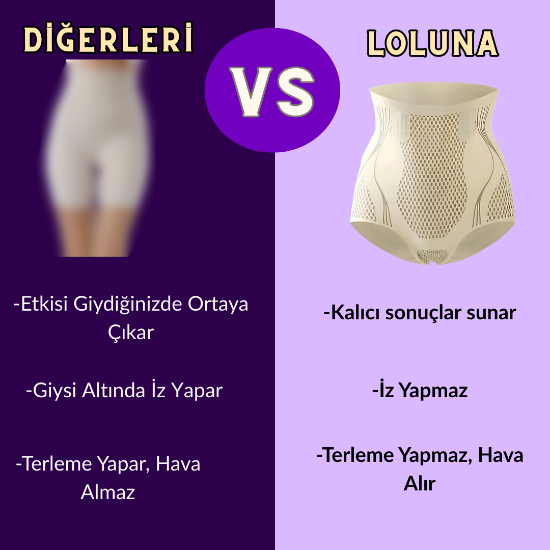 Yüksek belli özel tasarımıyla bel ve karın bölgesini anında toparlar, daha ince ve şekilli bir silüet sunar. Gün boyu rahatlıkla kullanılabilir, elbiselerin altında fark edilmez.